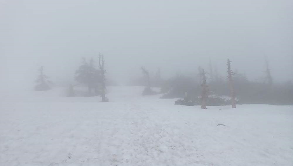 連休中、蔵王・熊野岳に登りました。4日は視界も悪く風速20m/s故にモスキート級の連れ合いが吹き飛ばされそうで途中下山、再度挑戦の5日は風速10m/s程度なので行ける所までと言う事で登り始めました。頂上まで行けたのは良いのですが、蔵王・御釡の湖面はエメラルドグリーンではなく、前日の雪で白濁になっておりました。