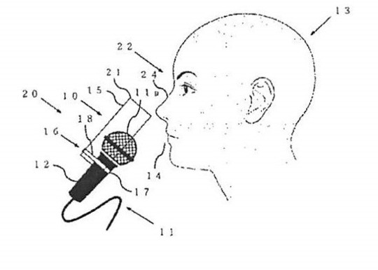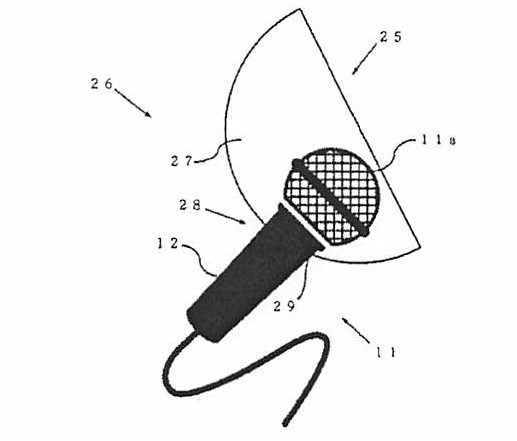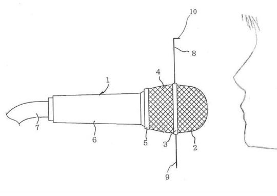 反射板の取り付け位置を、グリップ部ではなく、マイクロホンユニット内蔵の網目状ケース体(ポップガード:ポップフィルター)に位置を変更したのみで特許!