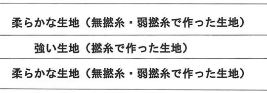 柔らかな生地と強い生地とを足し算(積層)したのみで、世界各国において、特許!