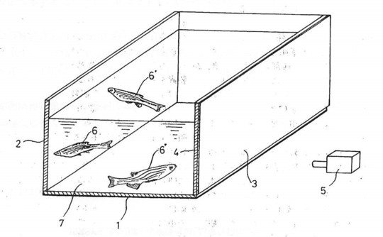 水槽の背部に映写機を配置したのみで実用新案登録に!