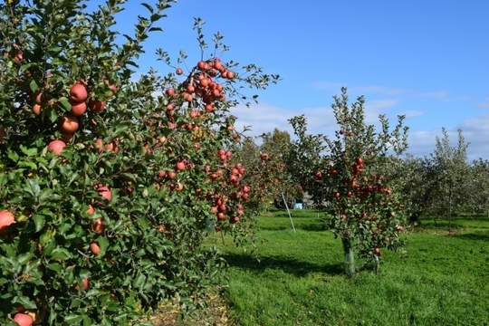 右下図の栽培は、林檎の樹の本数が多い故に収穫量多い!